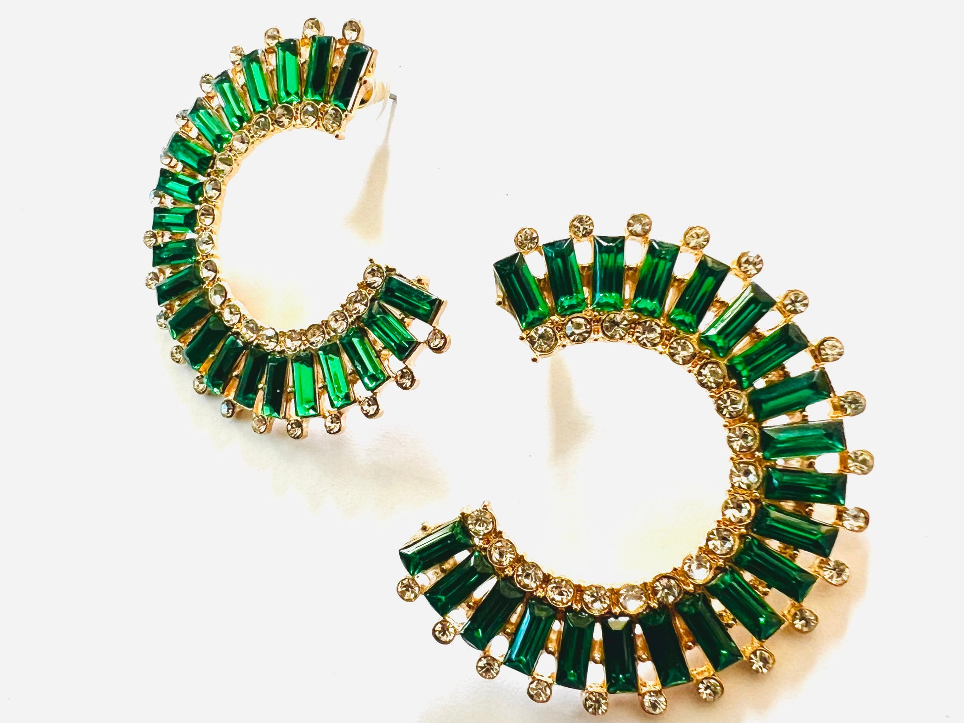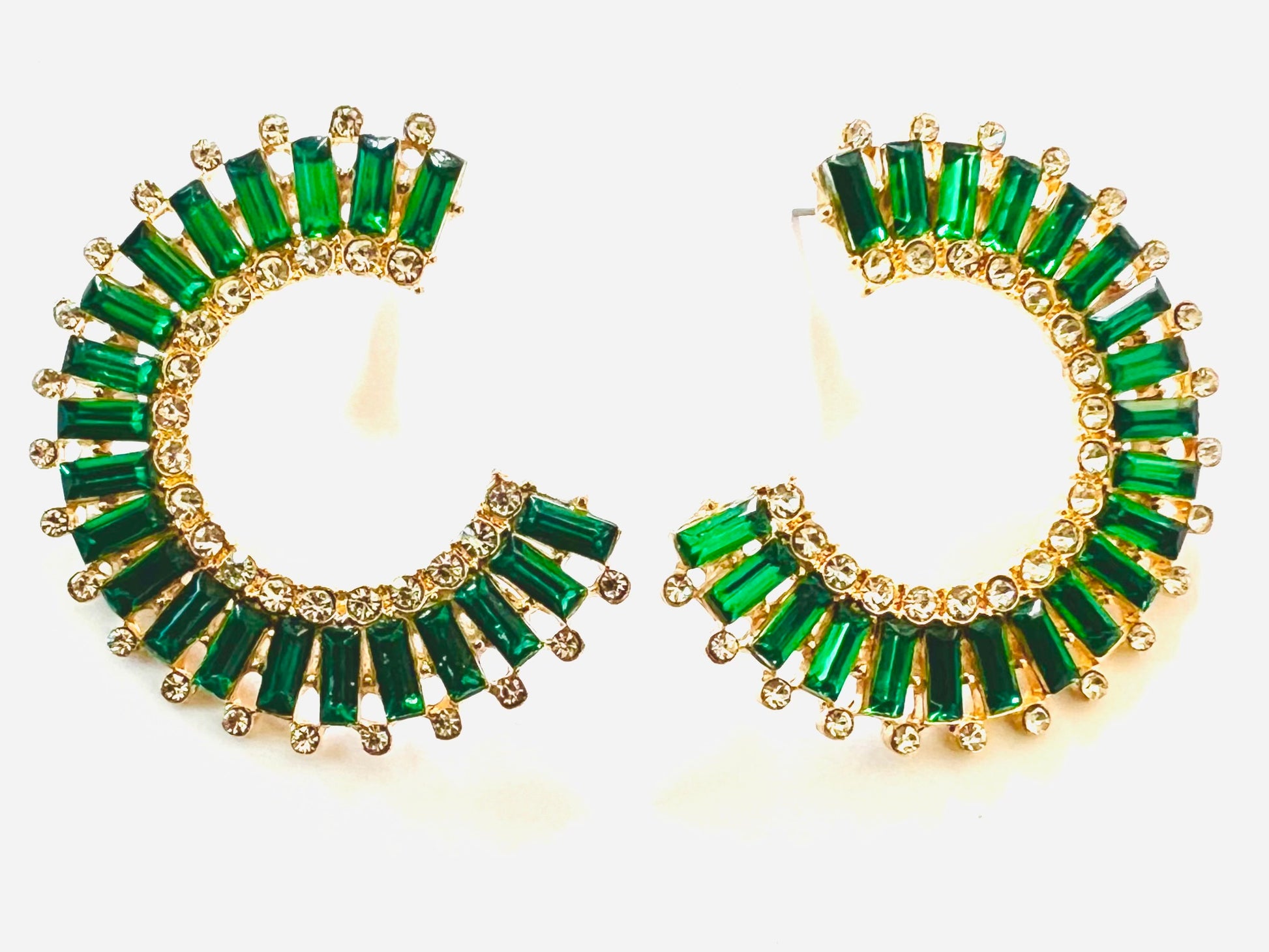 Emerald green rectangular rhinestones paired with white circular rhinestones in a beautiful crescent shape is perfection!