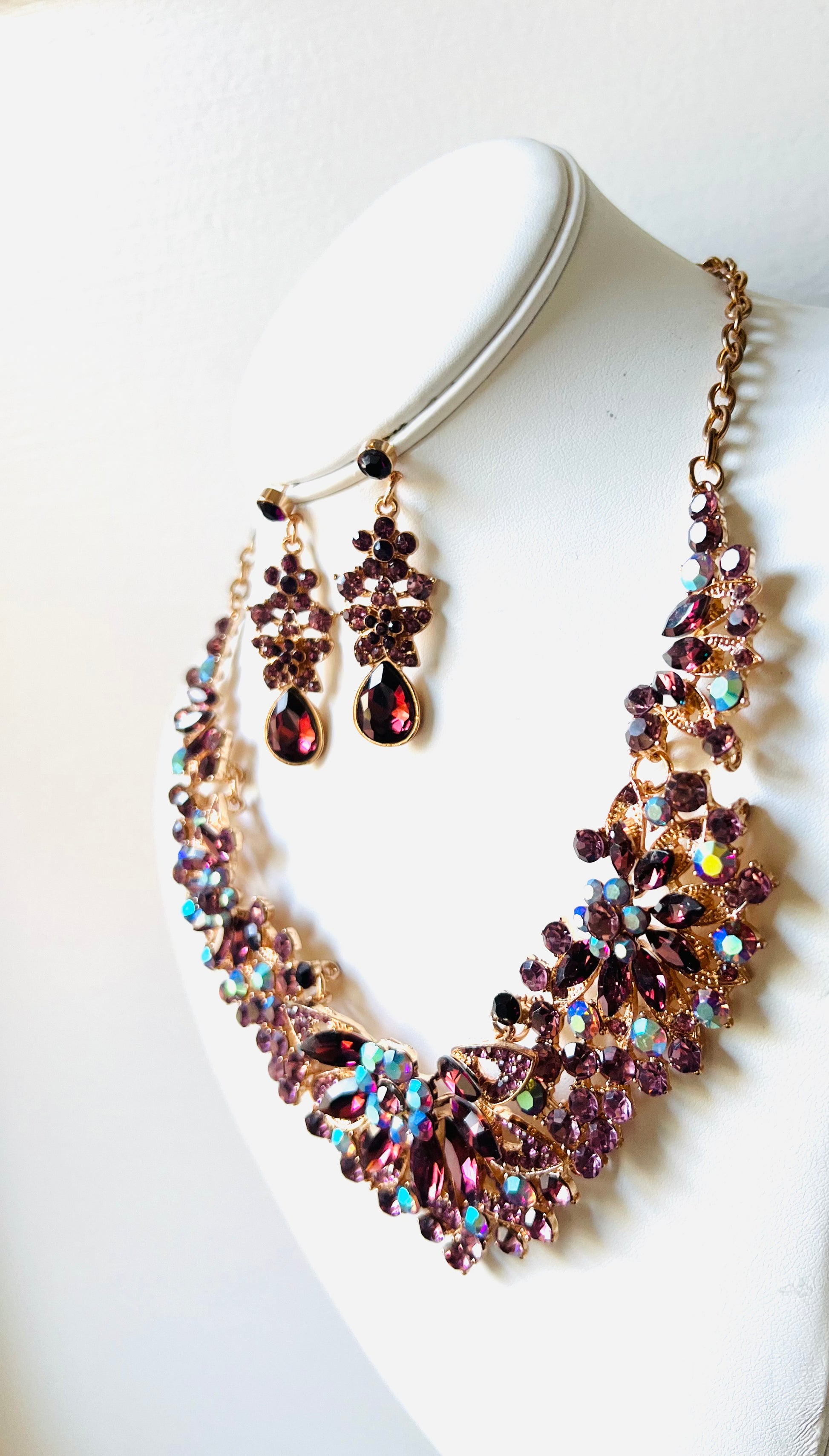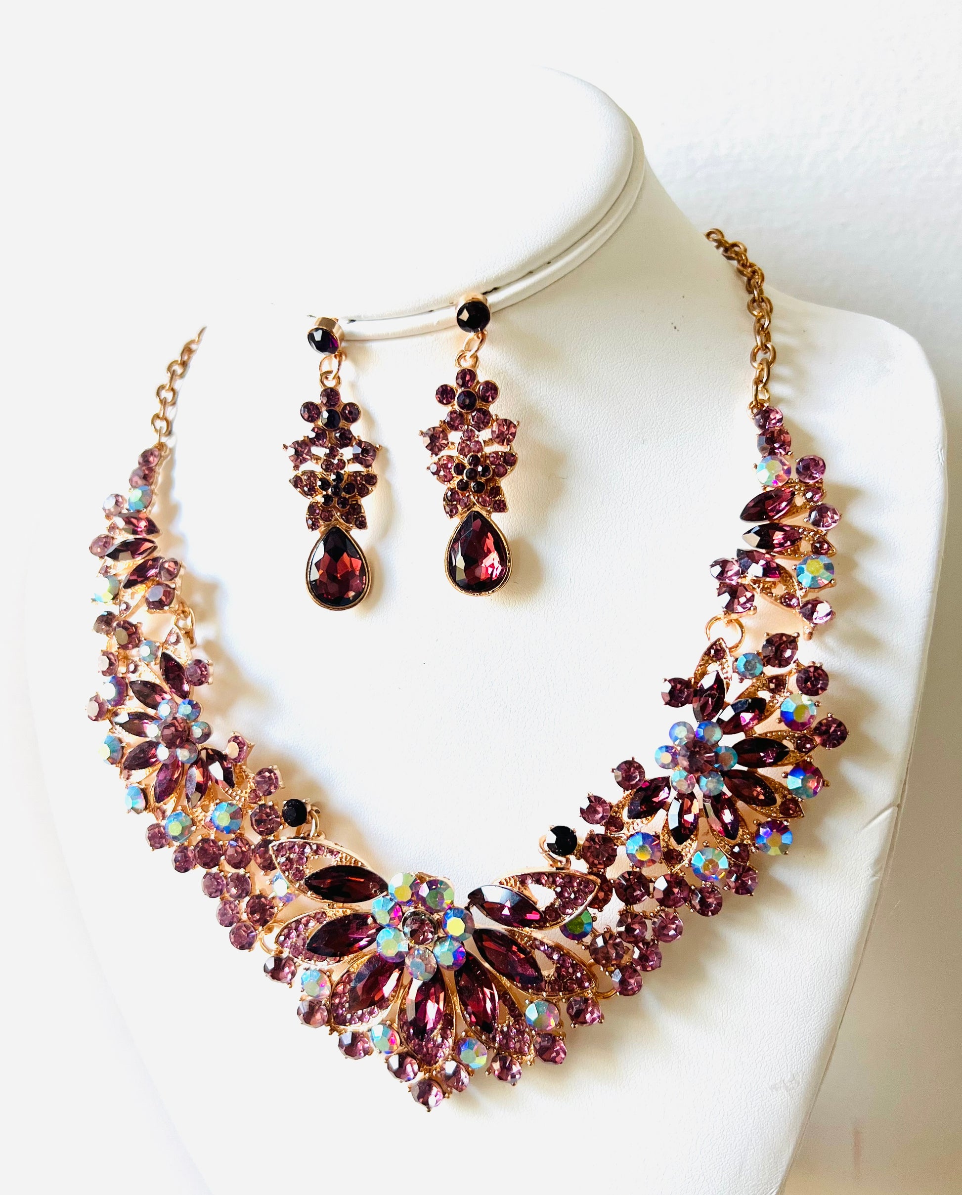 Deep purple flower blooming necklace set. Charmingly elegant and delightful.