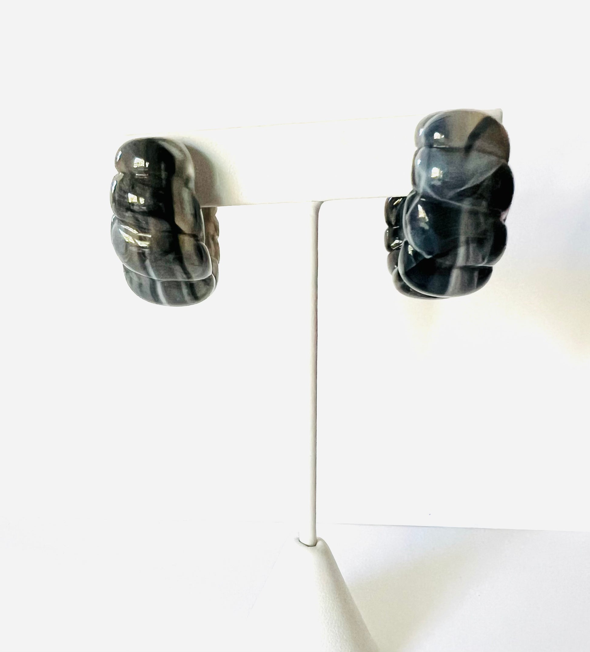 Chunky twisted hoop earring. The colors look marbleized adding more interest to the pair.